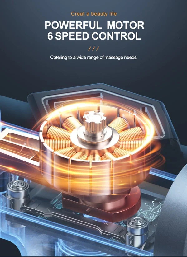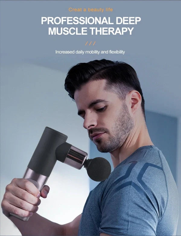 The massage gun delivers high-frequency percussion vibrations that penetrate deep into muscle tissue to help:
